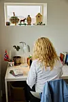 Vi tar turen en etasje opp, til der hun vanligvis jobber. Hun viser ikke med stolthet en plante som står på pulten med kun to blader igjen.